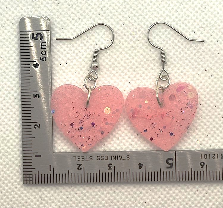 Pink Glitter Heart-Shape Earrings, Heart Design 1