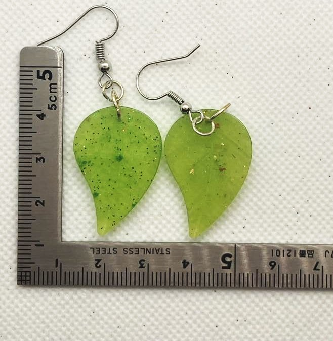 Green Leaf-Shape Earrings, Leaf Design 1