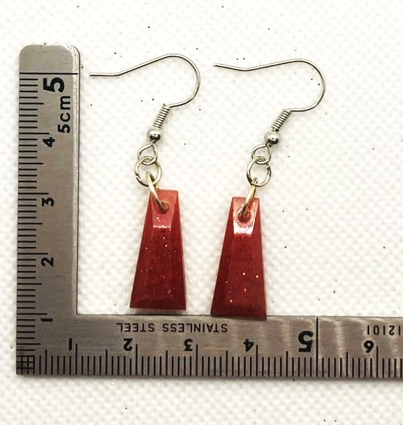 Red Glitter REctangle Earrings, Rectangle Design 2
